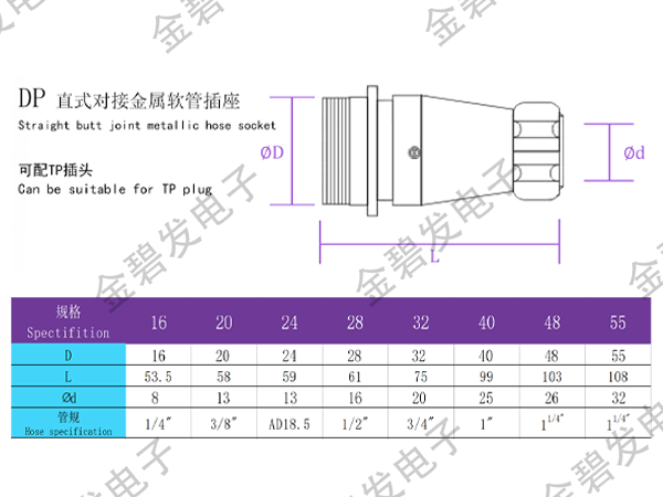 DP 直式对接金属软管插座可配TQ、APL插座